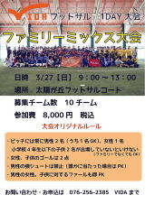 太陽丘スポーツ倶楽部Do wishにて フットサル1DAY大会『ファミリーミックス大会』 が開催されます 開催日 2016年3月27日(日)9時〜13時 募集数 10チーム 参加費 8,000円/チ−ム 詳細はVIDAさんのHPへどうぞ! |